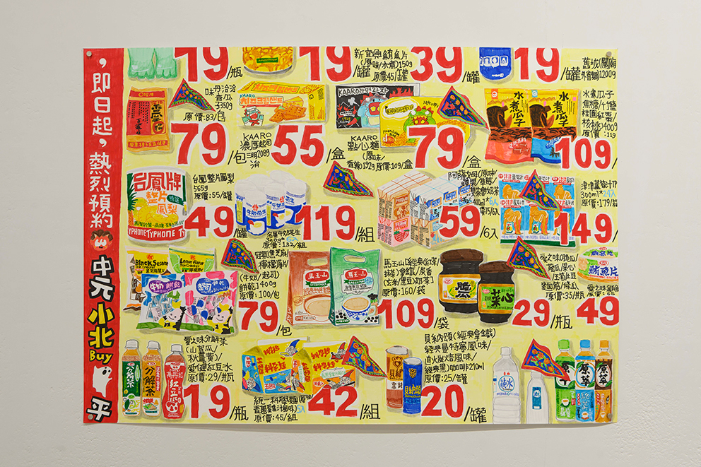 スーパーのチラシや週刊誌、ポイントカード、「NFT」といった世の中の“現象”を主な題材に制作を続ける。