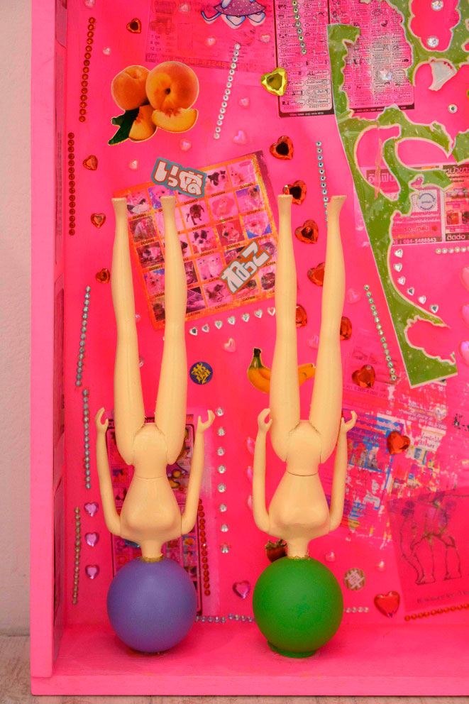 主に人形を取り入れたアッサンブラージュやオブジェの制作をしている。