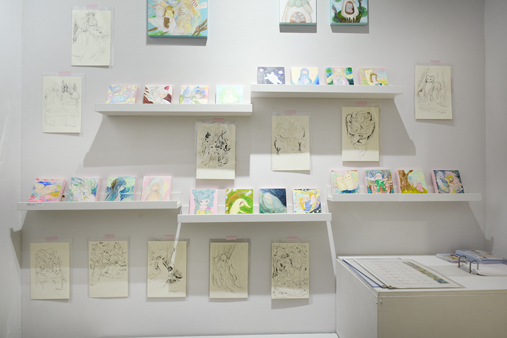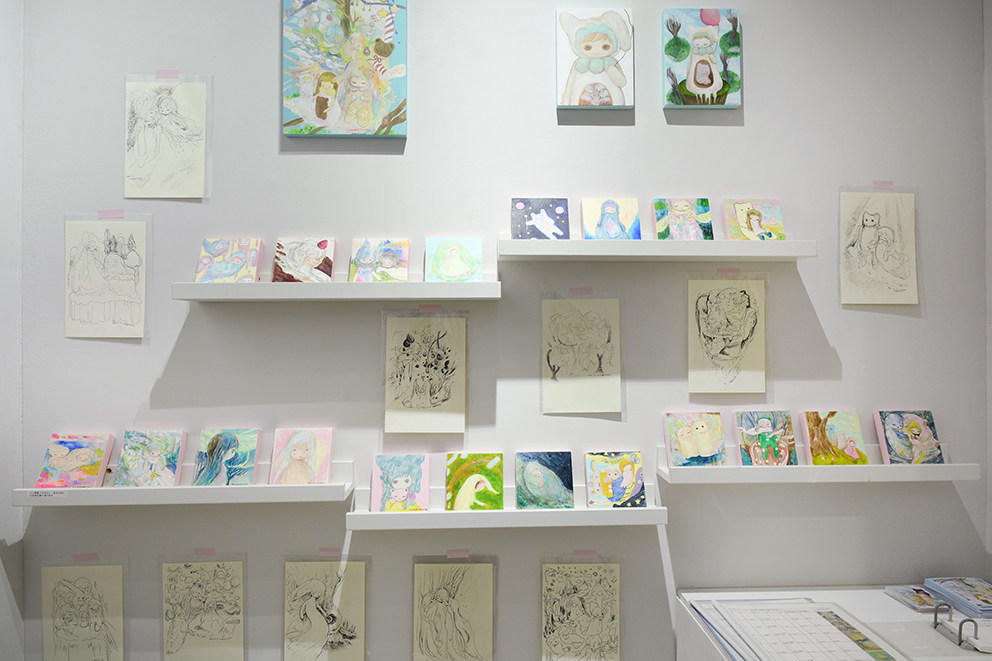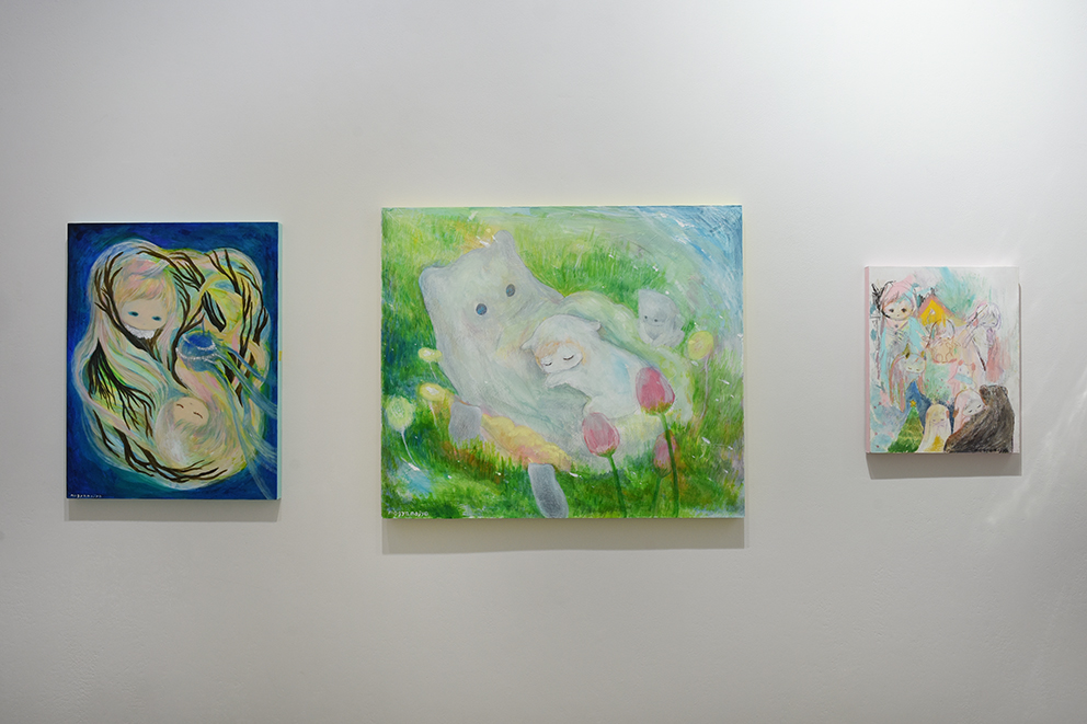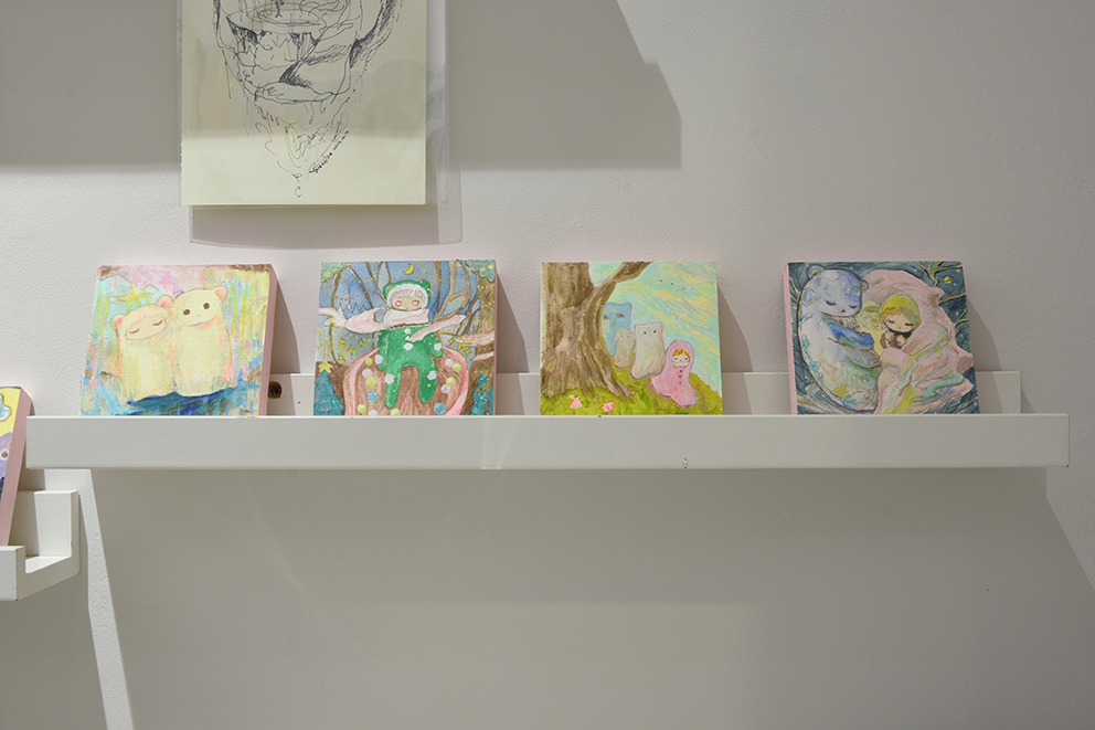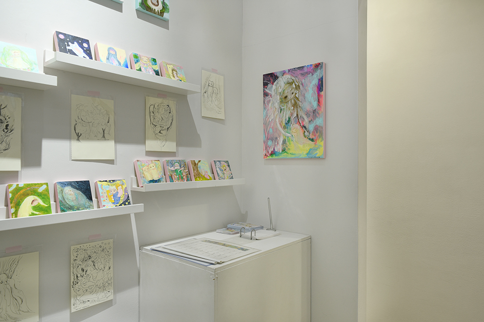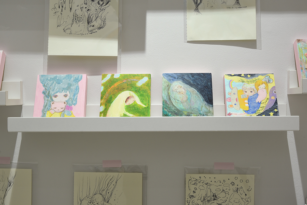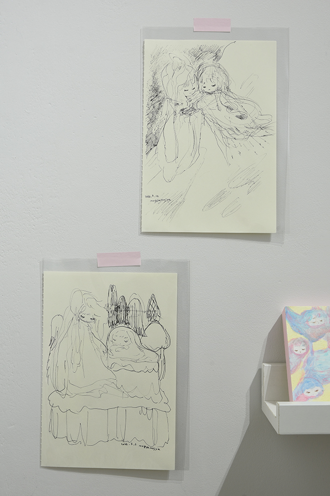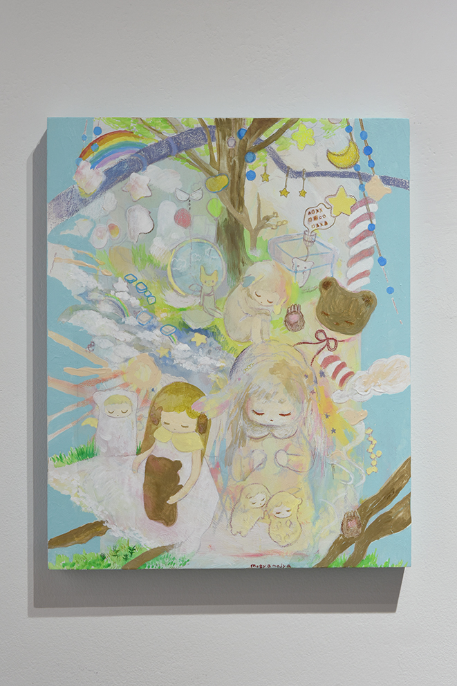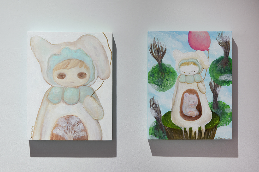 呼吸の仕方を忘れた時の旅 というテーマを持ちながら、繭の中のような安心できる場所、かみさまのようなものを描いたり作ったりしています。